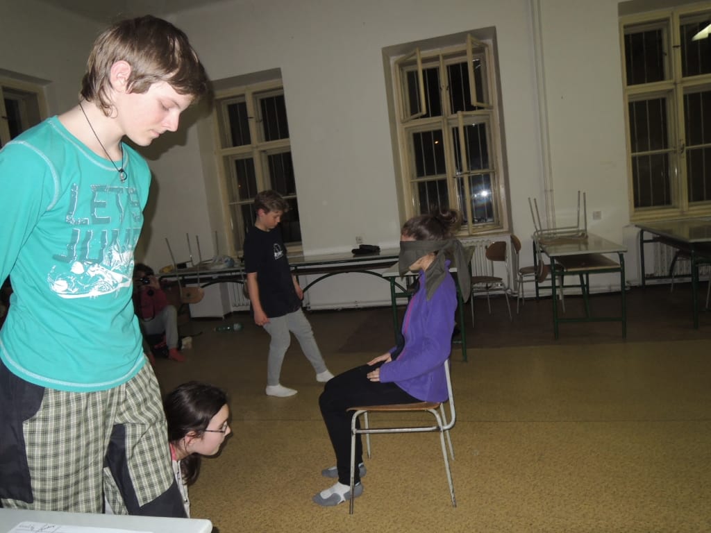 Sraz byl v 16:00 v Kr. poli. Přespávali jsme ve střední škole, která předtím byla zámkem. Když jsme přijeli, hráli jsme hru Timeline. Spát jsme šli o půl jedenácté.