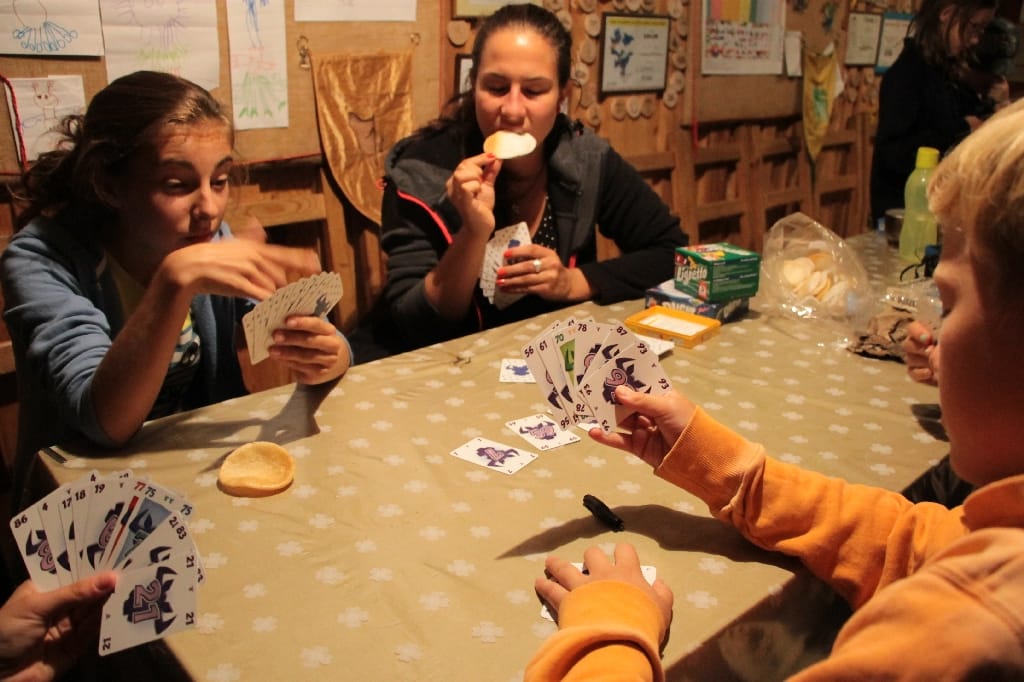 Po návratu následovala večeře, po které jsme se rozdělili na menší skupinky a hráli jsme stolní hry. Stěží by se daly vyzkoušet všechny, jelikož skautská základna byla opravdu skvěle zásobená. Po dohrání jme se jako předchozí večer přesunuli k ohni a společně zpívali.